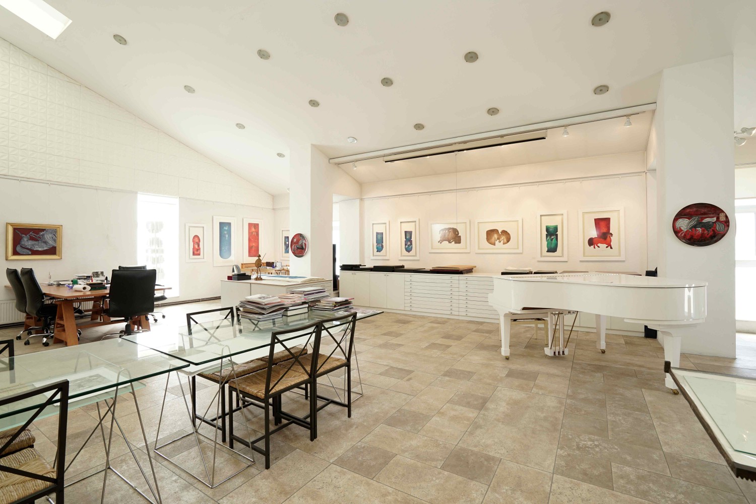 Tekcan decided to further develop the studio facilities and for this purpose, he bought a plot of land in Küçük Çamlıca in 1982 in order to build his own studio. What he wanted to do was to build a larger, international art house, beyond the studio. All of his artist friends enthusiastically supported this project. The building, the project of which was undertaken by the painter and architect Cihat Burak, was designed to satisfy multiple needs and was completed in 1984. Thus, Tekcan presented Artess Çamlıca Art House to serve Turkish art on Saturday, October 13, 1984 with a grand opening attended by 1000 people. The studio housed all the facilities that a modern studio demanded, including equipment to accommodate all printing techniques such as lithography, serigraphy and etching. With its large galleries, a large print archive, library and guesthouse, it became an exemplary print studio structure of international scale.